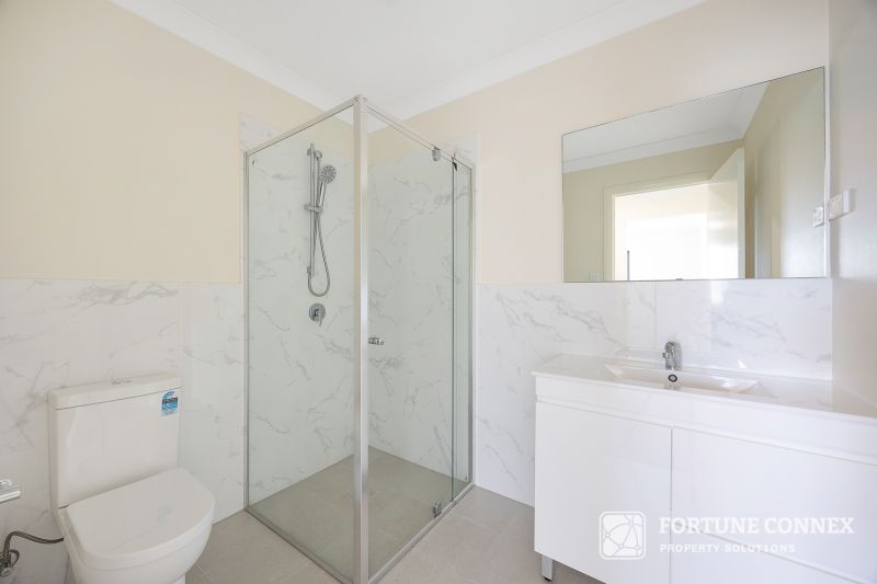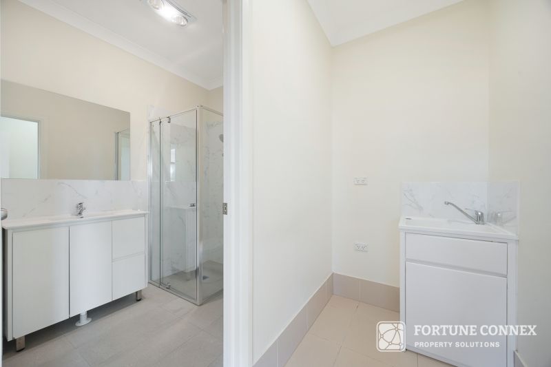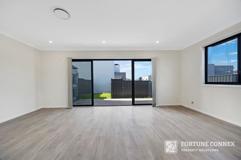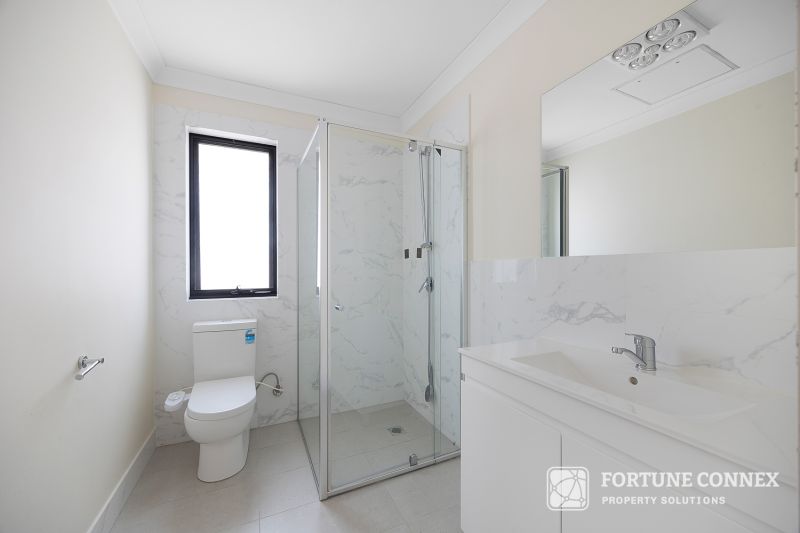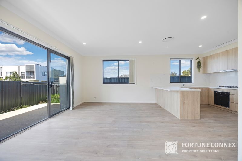 This property features four bedrooms and three bathrooms, including an ensuite. It also offers a spacious outdoor area with a grassed section suitable for recreation. The modern kitchen is equipped with gas stainless steel appliances, including an electric oven. Additional amenities include air conditioning and a gas hot water system. The property is conveniently located near schools, shops, Leppington station, public transport, and is within close driving proximity to the new South West airport.